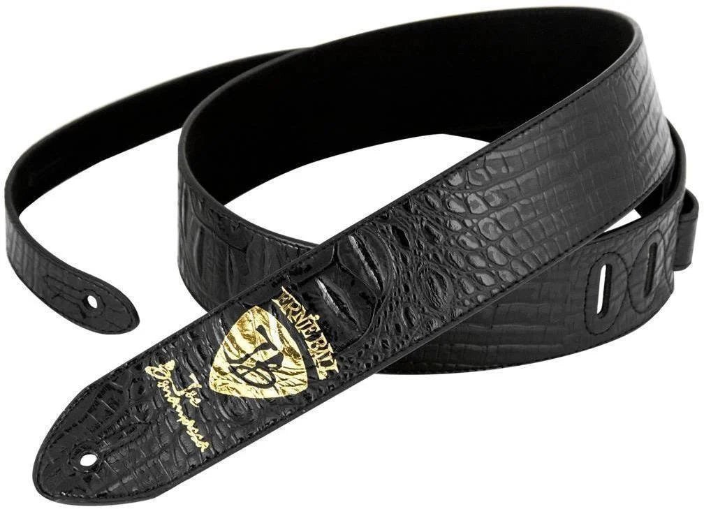 Joe Bonamassa Black Crocodile Leather Strap. Crocodiles print design with Joe Bonamassa emblem on premium black leather. Adjustable strap.